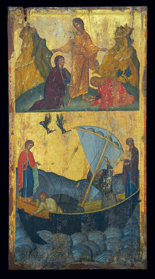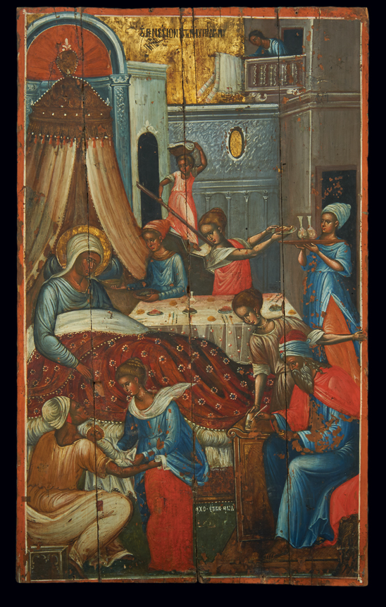 Visitors begin their tour with the collection of the 15th century byzantine icons that are exhibited on the right side of the central aisle. Particular attention is paid to the early 15th c. eminent painter Angelos Akotantos as the exhibition hosts two of the icons he painted for the iconostasis of the Closter of the Virgin Odegetria in the area of Messara. Apart from the written texts related to the interpretation of the collection, visitors can get additional information on the subject through a touchscreen.