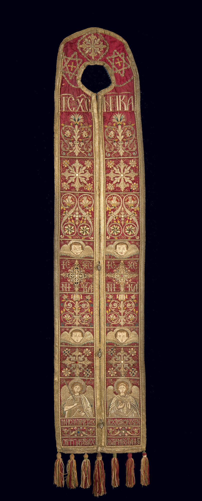 εκτίθεται στο χώρο των λειτουργικών αντικειμένων, καθώς και ιερατικά άμφια